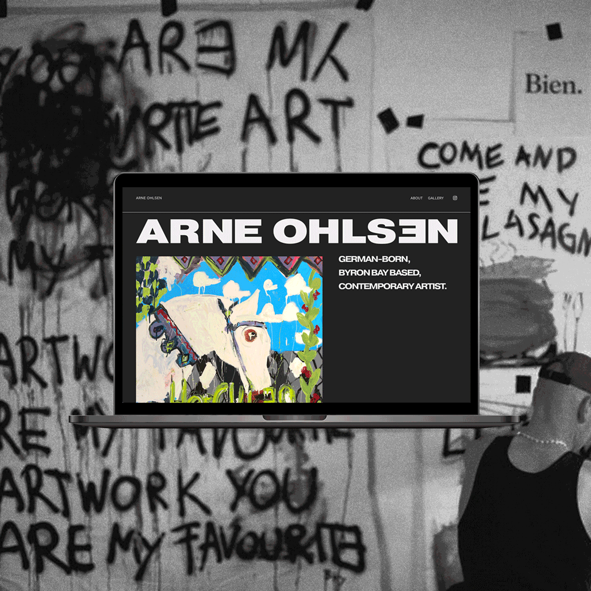 From the typography to the site structure, every design choice was made with intention: to reflect the depth and contrast of Arne’s practice while capturing the electric energy he brings both to his canvas and to everyday life.