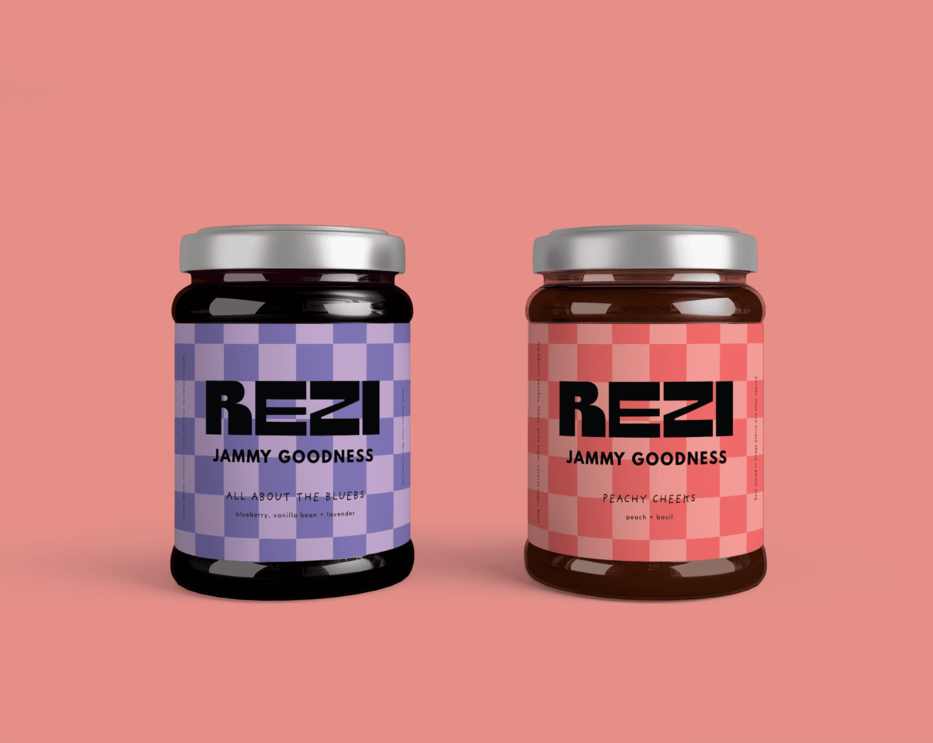REZI was a journey into combining my love for design and my desire to create with my own two hands. With a trip to Europe that sparked a love for pREZerves and access to an abundance of beautiful produce around Byron Bay, I thought… why the heck not try my hand at making some jam! But in classic Skye fashion, these jams couldn’t be your stock standard flavours. So REZI was born with its bright and colourful branding that pushes the boundaries of not only classic jam labels but also flavours (fruit + herbs ftw). 🫐