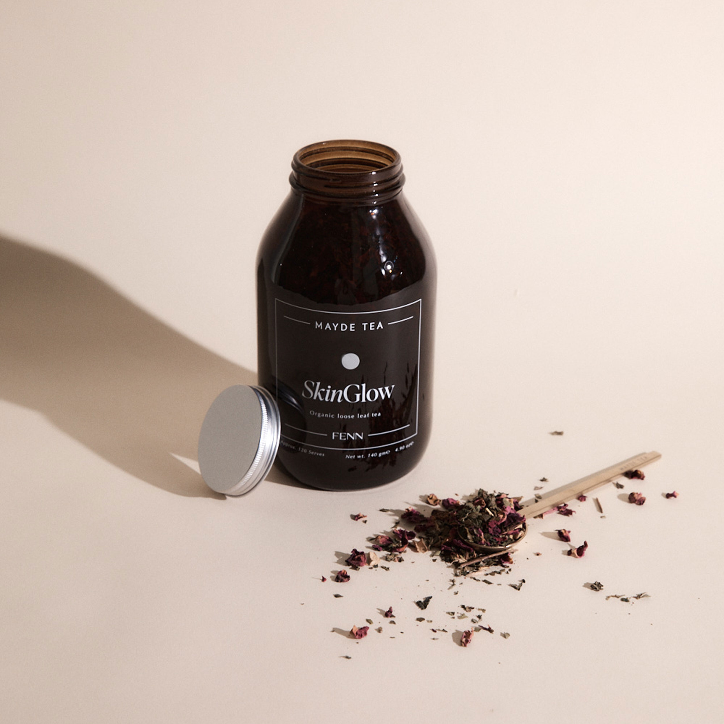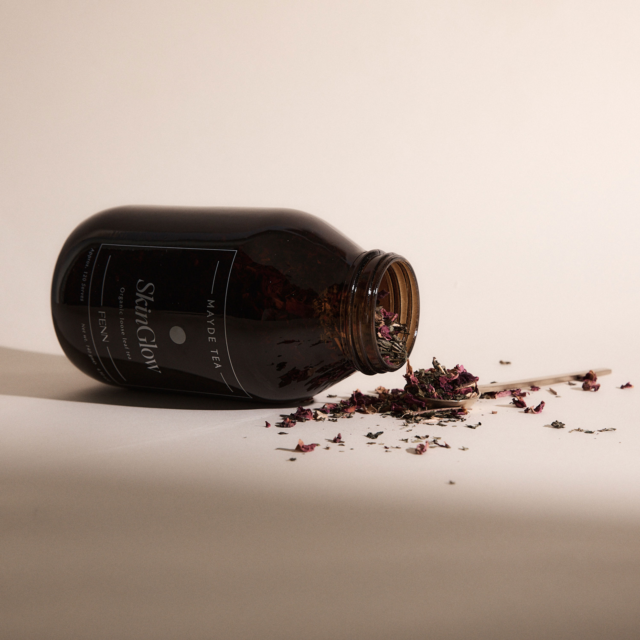 Our design challenge was to create packaging that honored the distinct identities of both brands while feeling perfectly at home within Mayde Tea’s existing range. The result? A soft, refined jar design that carries the essence of FENN’s holistic elegance and Mayde’s signature artisanal feel — seamlessly integrated, yet uniquely its own.