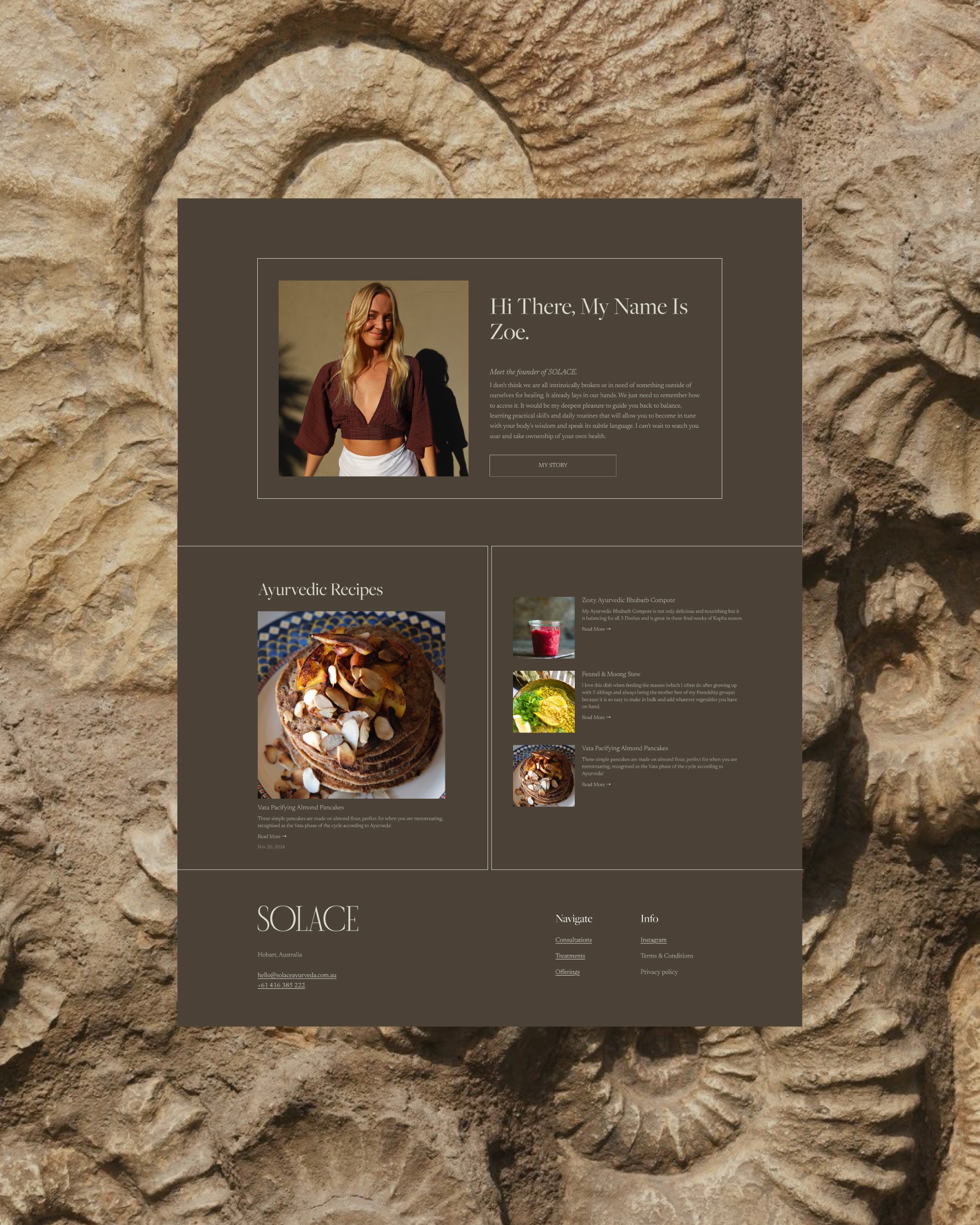 Working with Zoe on the brand identity for SOLACE was a deeply grounding experience — a project rooted in stillness, reflection, and the quiet power of nature. From the very beginning, the intention was clear: to create a brand that feels like an exhale. A gentle return to self.