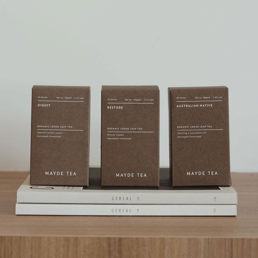 As part of Mayde Tea’s ongoing shift toward sustainability, we had the pleasure of redesigning the 40-serve tea packaging, a thoughtful evolution from their iconic tubes to fully recyclable flat-pack boxes.